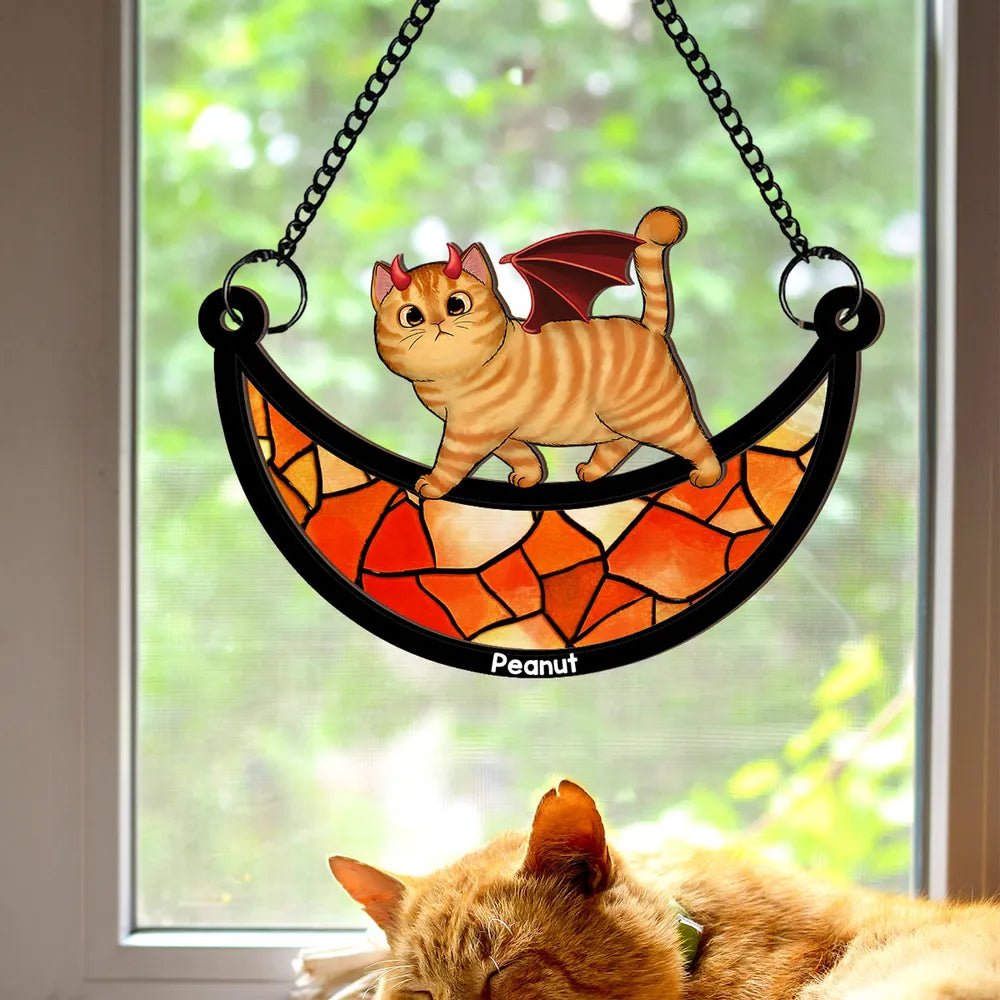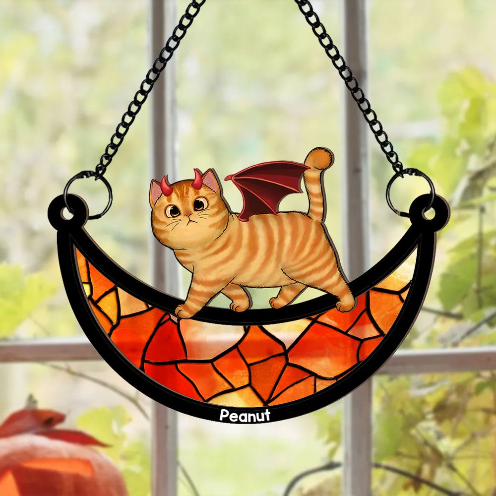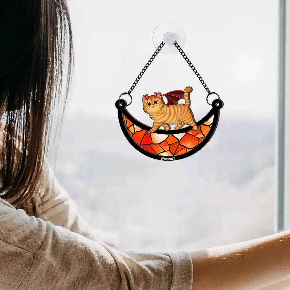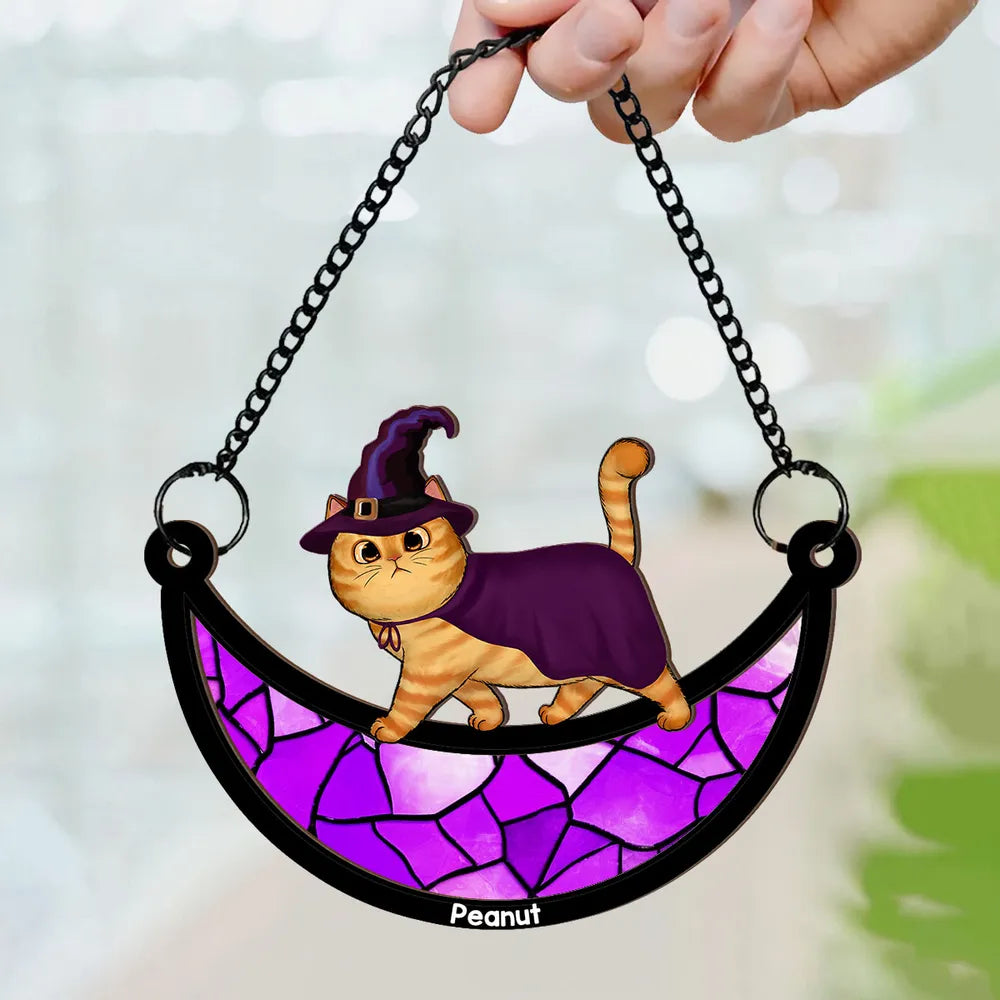 A playful witchy cat stands on a purple crescent, turning your love for felines into a glowing moment of companionship. The layered build and optional pet name make this a personal keepsake—warm, whimsical, and made to shine by the window.