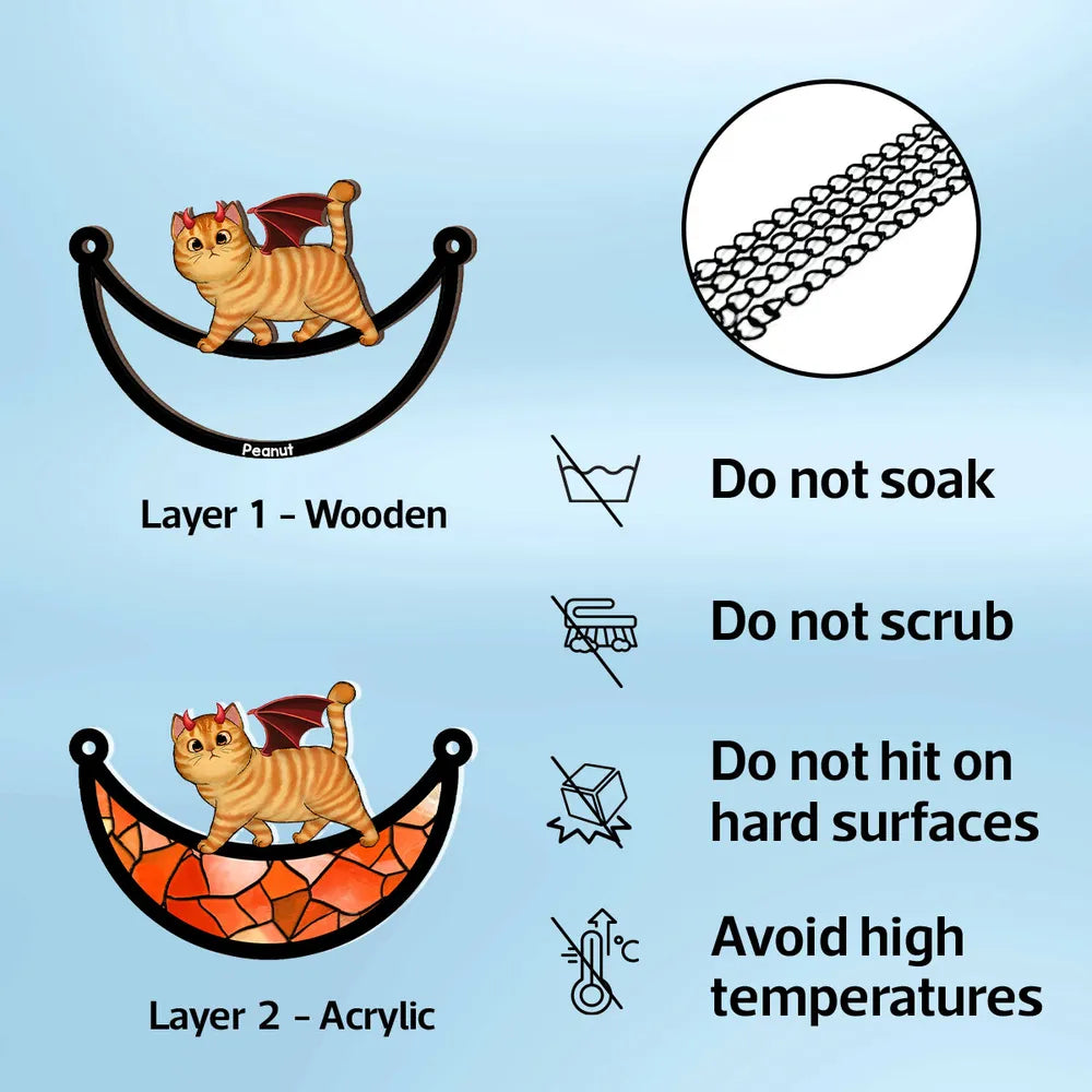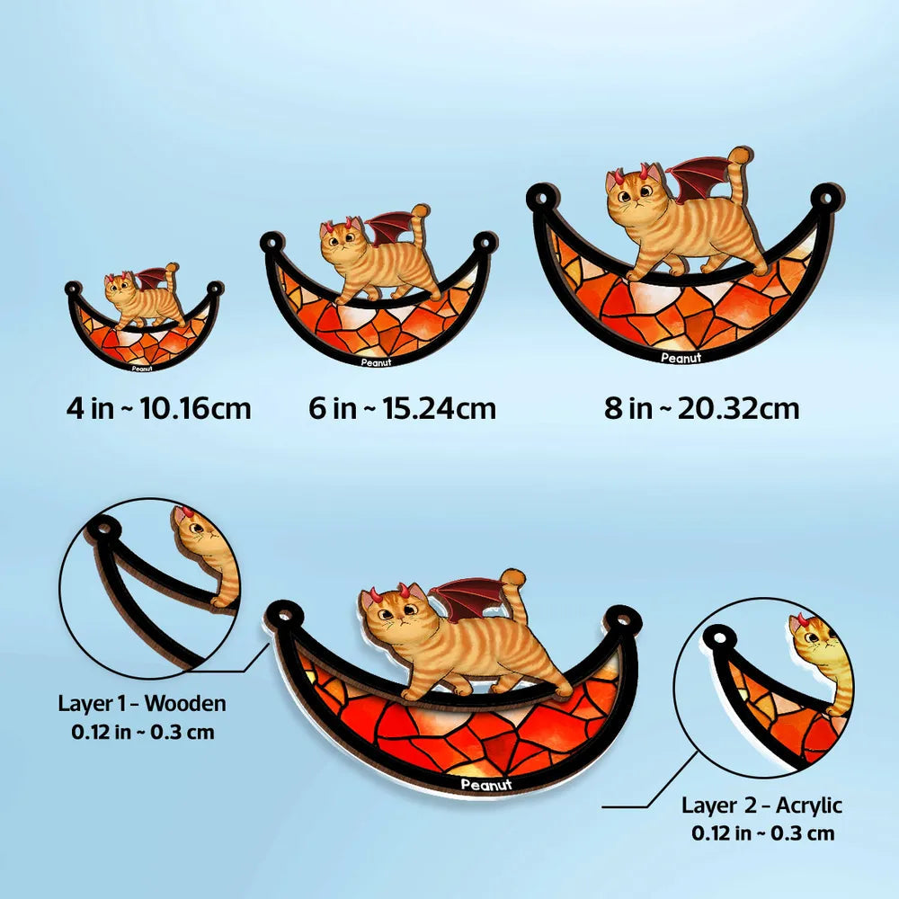 Wood and Acrylic Layered Ornament: Layered wood backing with acrylic front for depth and clarity. The stained-glass-style purple crescent glows in bright light; edges are smoothly finished; metal chain and rings hang securely while keeping the piece lightweight. Optional pet name prints clean and crisp.